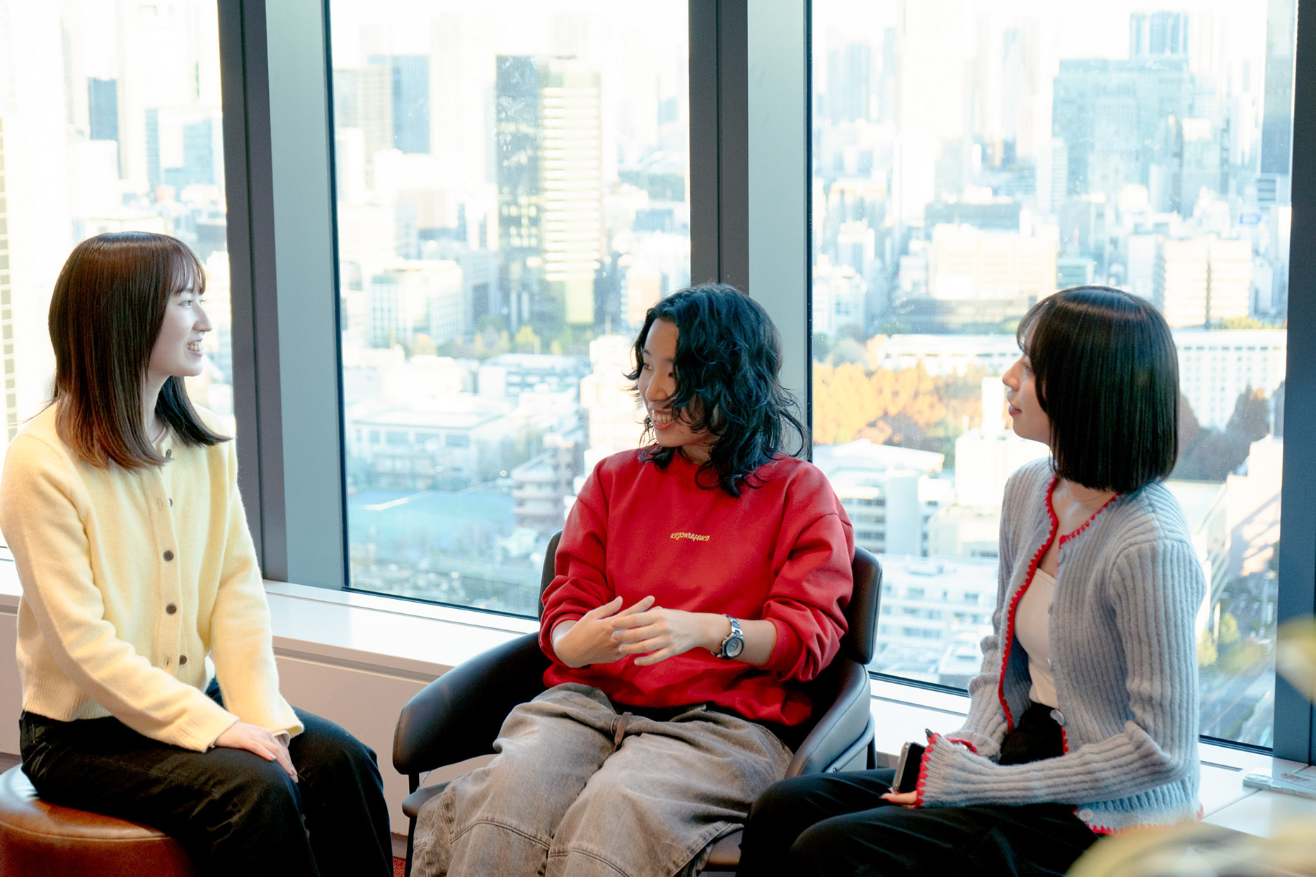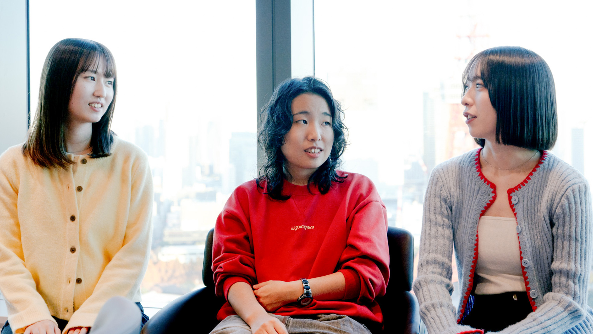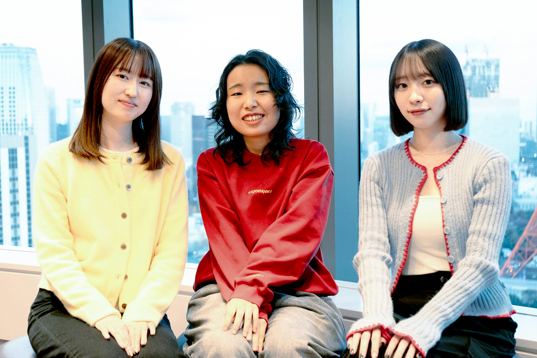 左から、クライアントプロダクト本部 小川 真帆、カスタマープロダクト本部 岩上 ひかる、カスタマープロダクト本部 野口 さはら