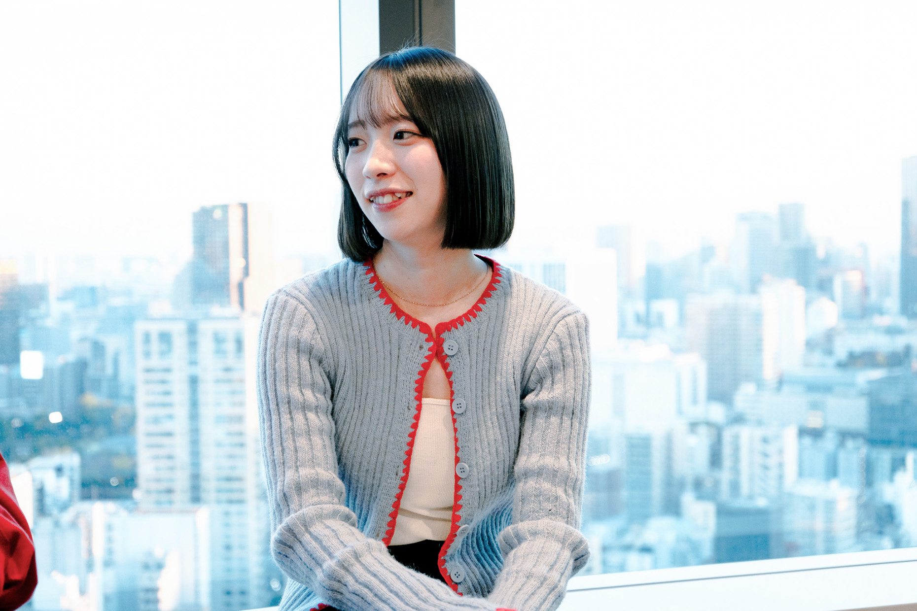 私も、入社前は「先輩デザイナーのアシスタント」のような動きが多いかと思っていたんですが、例えば今関わっているプロジェクトは多職種のメンバーがいるチームで、その中にデザイナーは先輩と私の2人だけしかいません。だからこそ、私が新人であることは関係なく「デザイナーとしてどう思うか?」をしっかり求められるし、ディレクターに対しても「ユーザー視点から見たらこう思う」「それはやめた方がいいと思います」など自分の意見を伝える必要がある。責任を伴うし難しいことも多いのですが、学生時代からデザイナー以外の人たちとも一緒に仕事を進めていきたいと思っていたので、実現できてうれしいです。